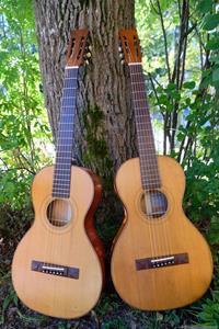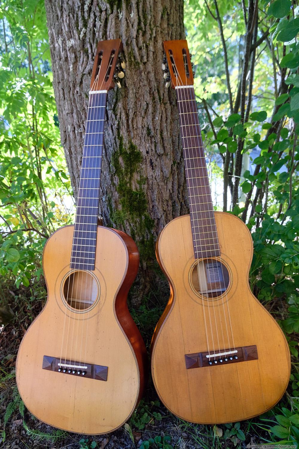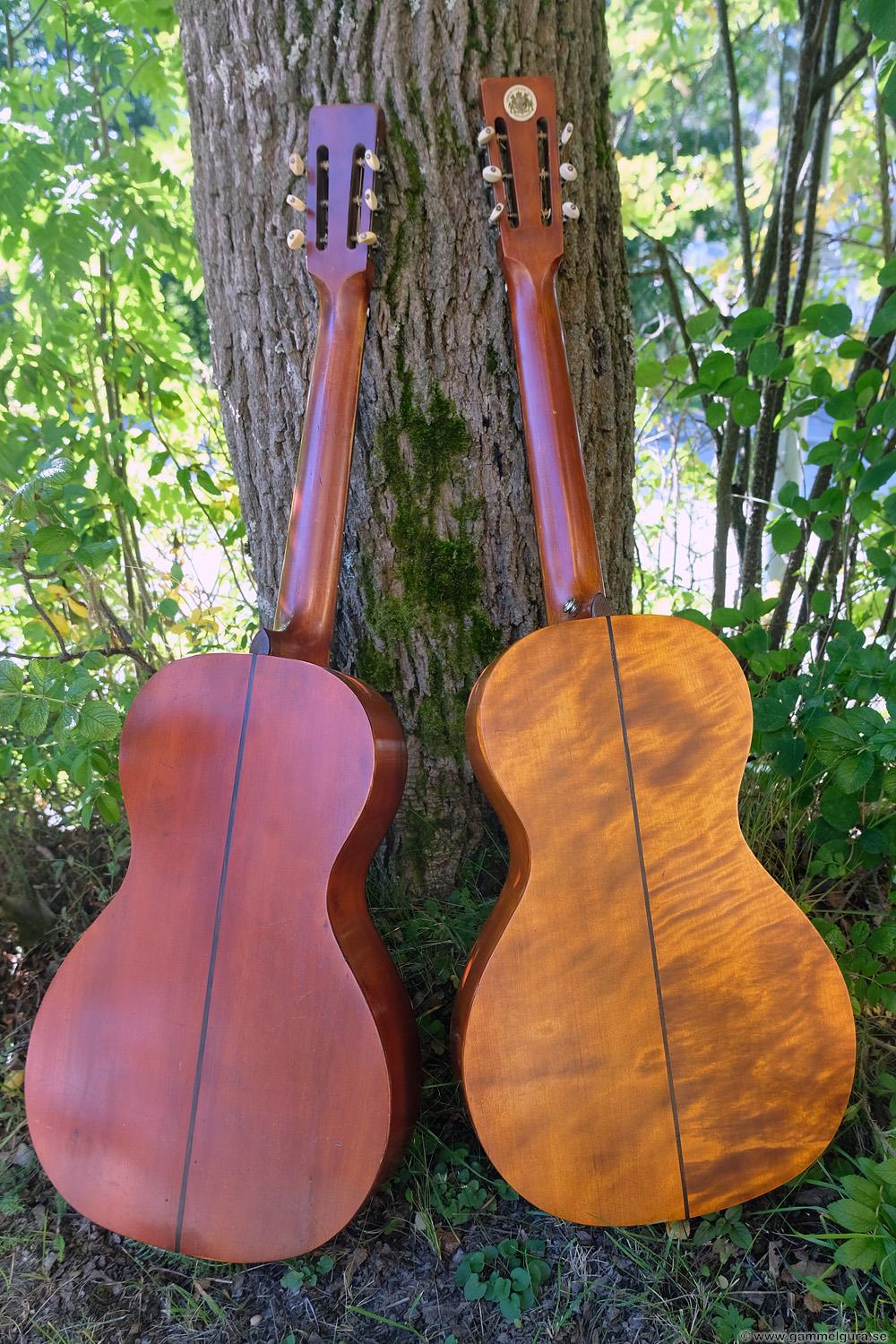 Här är bilder på de färdiga gitarrerna, 1907 till vänster och 1906 till höger med omlackad botten.