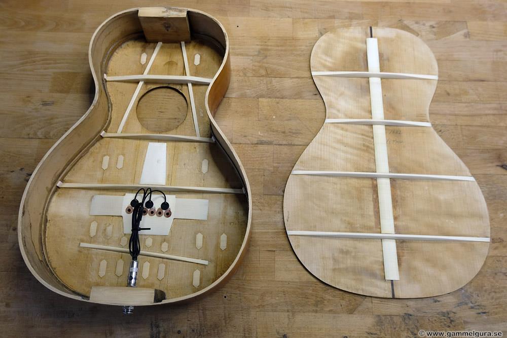 Tänker inte berätta så mycket om de här, det som gjordes var alla moment som ingår i en GammelGura, inklusive K&K mickar, bortsett från att jag inte monterade grommets på stämskruvarnas stolpar då jag ville hålla det lite mer original. Båda hade väldigt krympta bottnar och behövde en mittsticka i rosewood för att ersätta björkträet som krympt.