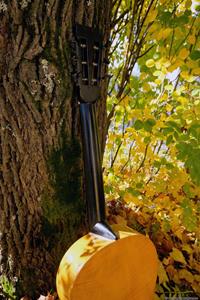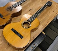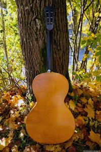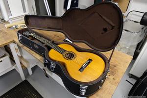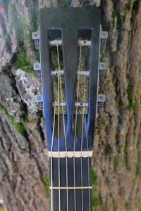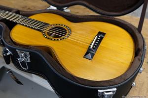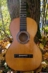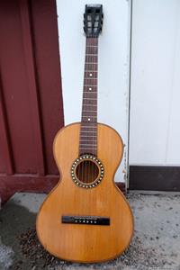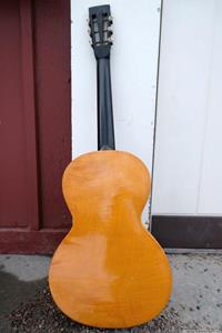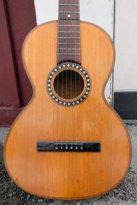 Gitarren, som var en Europeisk parlor från ca 1910, var i bra skick och utan sprickor. Fin lönn i botten och sida, även halsen var i svartmålad lönn. Botten var i ett stycke. Rosewood i greppbräda. Det enda större felet var en rejäl spricka i huvudet som var till hälften lös vid infästningen till halsen. Den hade hängt ospelbar i många år på en vägg med för hög stränghöjd.