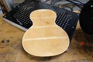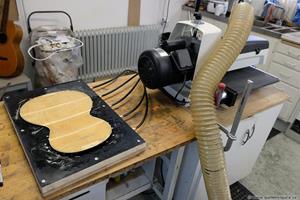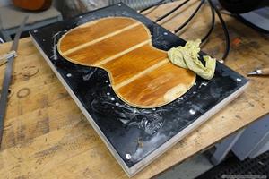Alla ribbor i lock och botten byttes ut. Av nån anledning tog jag inga bilder på jobbet med ribbor och hoplimningen, men den fick den vanliga ribbningen i lock och botten och dessutom en monterad K&K mick. Det jag har är en bild på den med allting limmat och innan jag gjorde den sista justeringen och lackningen.