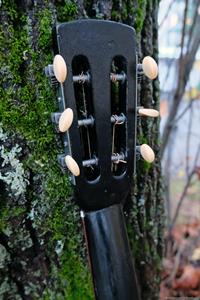 Jag har påbörjat en ny lokalgitarr och ska försöka att inte sälja den. Jag fick jobba över för att bli klar på grund av ombandningen och det var ganska mörkt när jag tog bilderna på den färdiga gitarren.